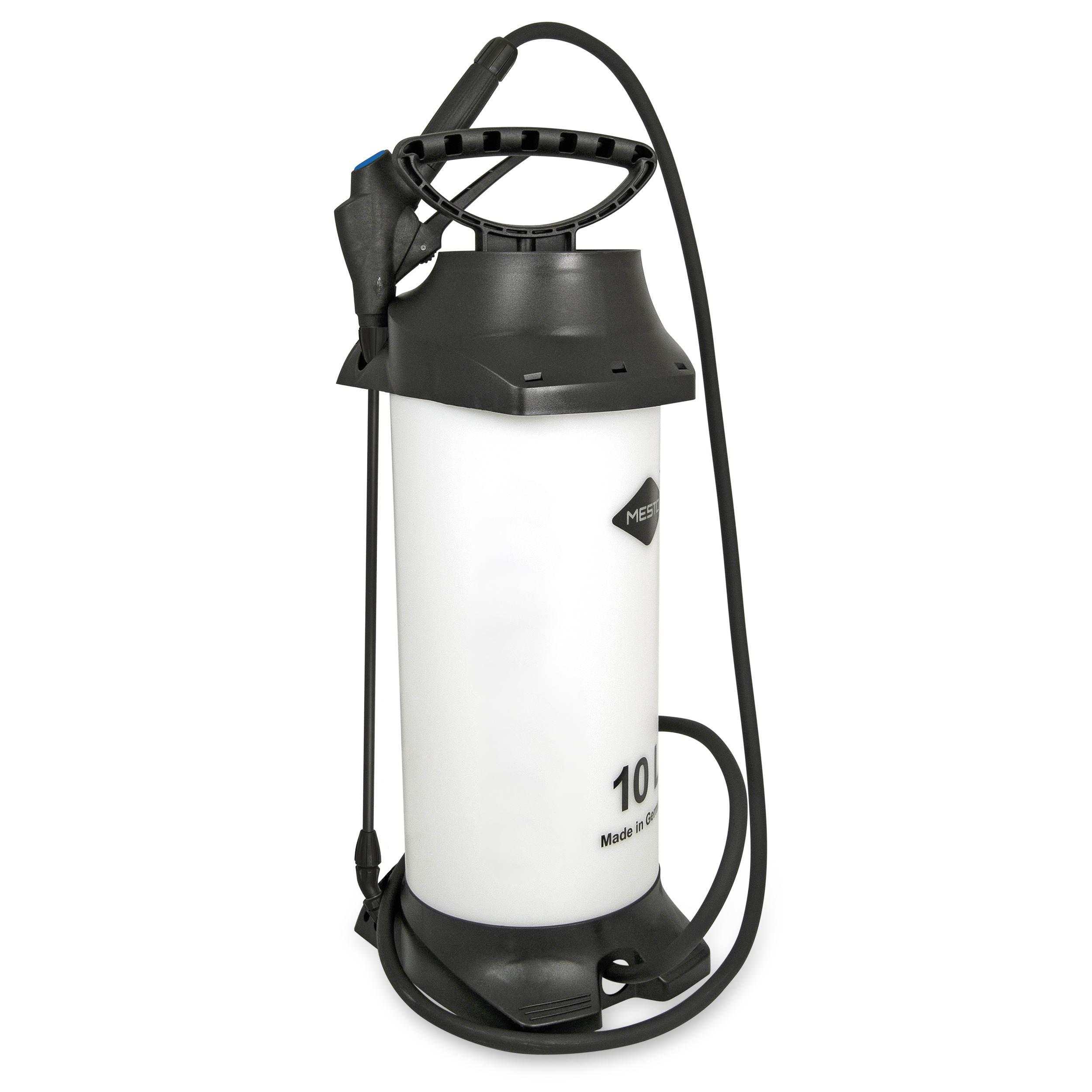 Zbiornik o pojemności 10 litrów, który można nosić na boku, jest wyposażony w dużą poduszkę ciśnieniową, co oznacza mniejszą konieczność pompowania. Opryskiwacz jest wyposażony w 50 cm długą, obrotową o 360° rurę natrysku z plastiku z dyszą płaską 90-02 wykonaną z tworzywa sztucznego oraz 2,0 m długim wężem. Profesjonalna pompa z ergonomicznym uchwytem pompy ma specjalnie lakierowany cylinder z specjalnie pokrytą sprężyną. Uszczelki wykonane z kauczuku etylenowo-propylenowo-dienowego (EPDM) oferują dobrą odporność na wielu środków czystości. Rury natryskowe i przedłużające można przechowywać w sprzęcie. Duży lejek do napełniania dopełnia wyposażenie tego opryskiwacza przemysłowego.