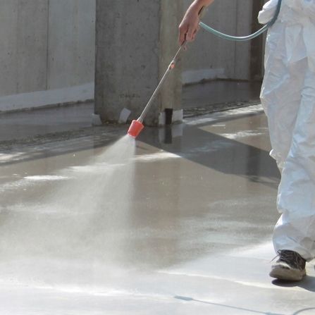 - Przed zastosowaniem, powierzchnia betonu powinna być czysta i umyta. Umyć za pomocą maszyny ciśnieniowej, przy pomocy wody, lub środka Degreaser.